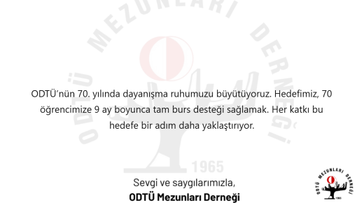 AnasayfaHakkımızdaE-Kart Satın AlKampanya Oluşturİletişim 🎗️ Devam Eden Kampanyalar Yayındaki kampanyaları seçip bağış yapabilirsiniz. Filiz ve Mutlu Evleniyor 👤 Filiz Güneş ve Mutlu Erdem · 📅 2026-08-01 Toplanan: 36.000₺ Detay ❤️ Bağış Yap Bayram Bağışı Eğitime Destek Olsun 👤 Burs ve Yardımlar Komitesi · 📅 2026-04-01 26.250₺ toplandı · Hedef: 50.000₺ · %53 Detay ❤️ Bağış Yap 70. Yılda 70 Öğrenciye Umut 👤 Burs ve Yardımlar Komitesi · 📅 2026-05-31 50.850₺ toplandı · Hedef: 280.000₺ · %18 Detay ❤️ Bağış Yap